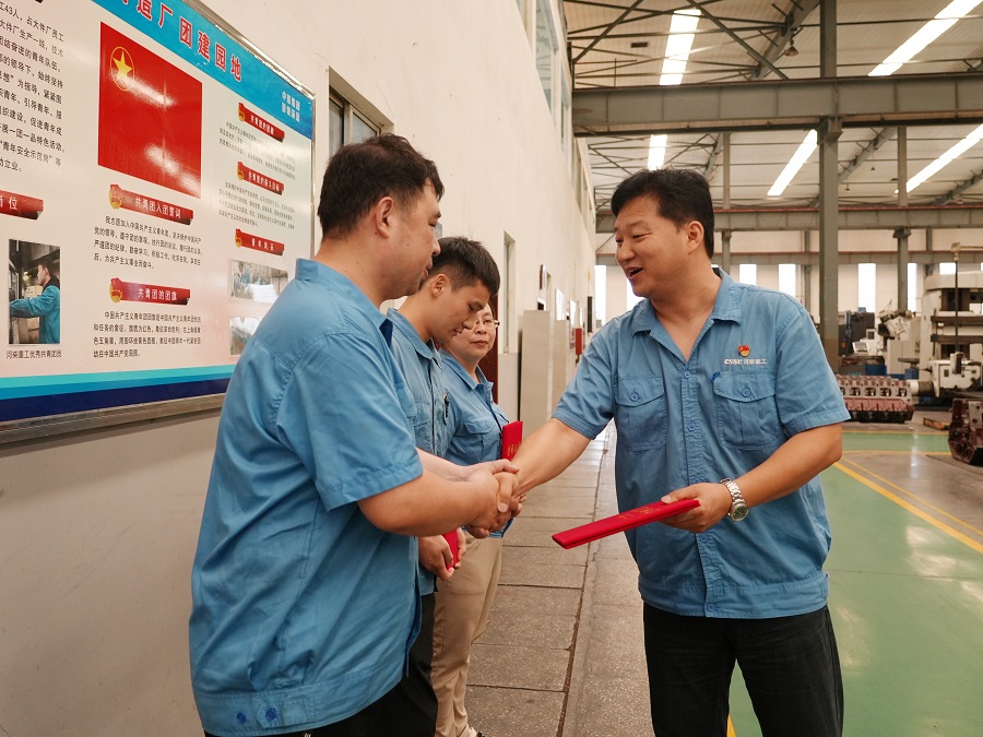 7月1日,在庆祝中国共产党成立104周年之际,中船河柴党委副书记、总经理王正祥,党委委员、纪委书记刘文凯化身“荣誉使者”,走进车间厂房、办公室等,把“先进基层党组织”“优秀共产党员”和“优秀党务工作者”的证书送到受表彰者手中,以别开生面的形式让这场表彰既有温度,又有力量。